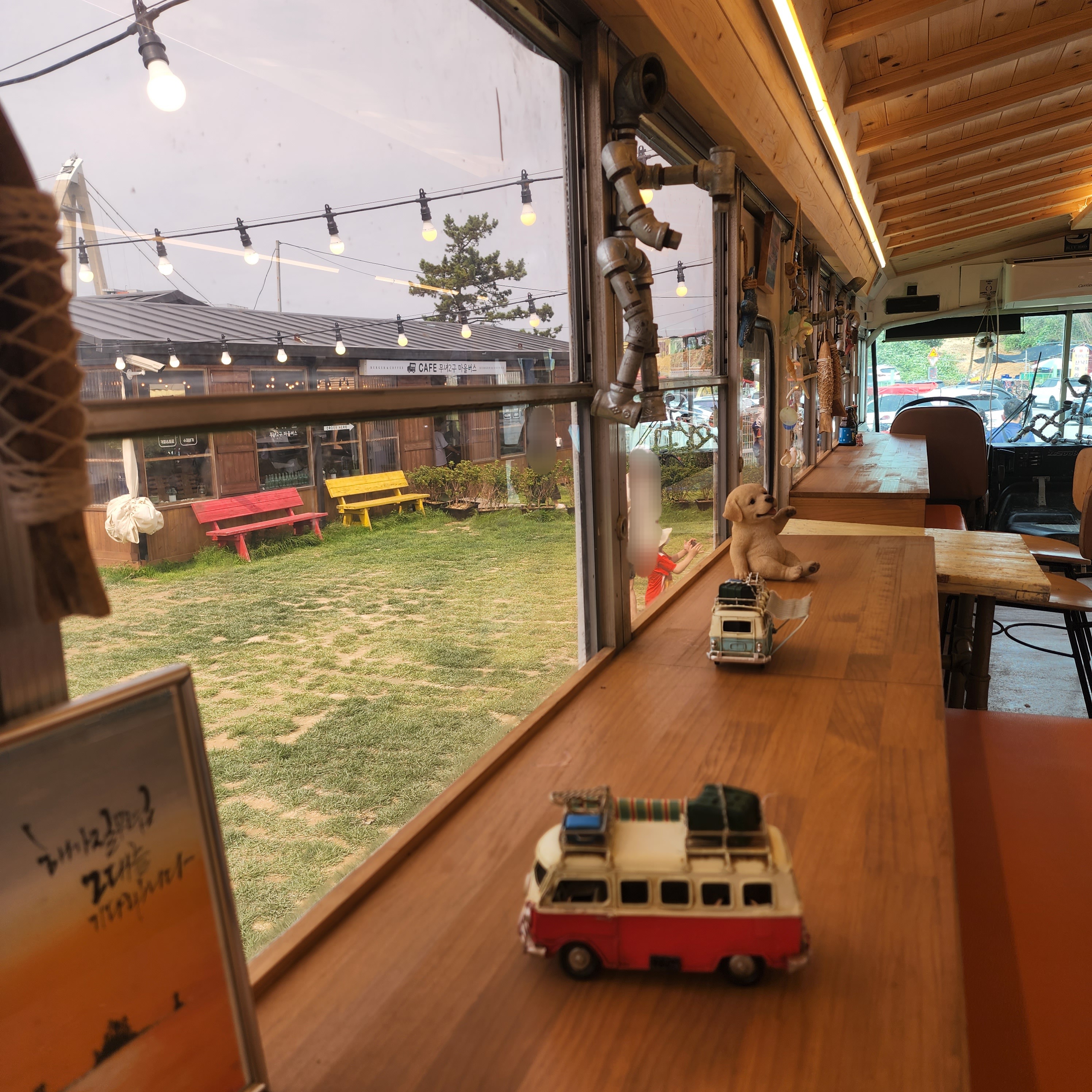 버스를 개조한 좌석들이 있는데